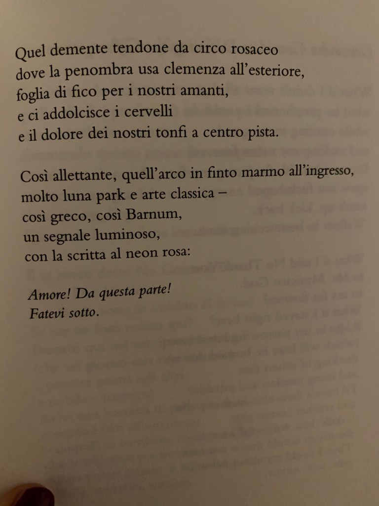 Voi datemi qualche ora mattutina e io vi scoverò poesie insolite, remote, indispettite e scorrette. Come in questo caso, che M. Atwood mette a nudo la brutalità del corpo per giungere all’insegna a neon dell’amore. Da questa parte!