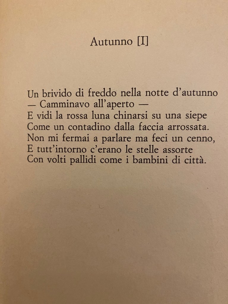 T. E. Hulme, con intuito modernista, si prodiga di ricreare visioni della realtà che trasmettano intuizioni emozionali più che forme concrete. Nelle sue poesie, spesso brevi, compaiono coppie di immagini che si sovrappongono a significare il significante e a immaginare l’inimmaginabile che attinge dalla parola poetica (mai estetica) la vis creativa di esondare la finitezza dell’ideazione per giungere, quasi intimoriti, all’infinitezza dell’immagine, come fosse una propaggine alla idealità.