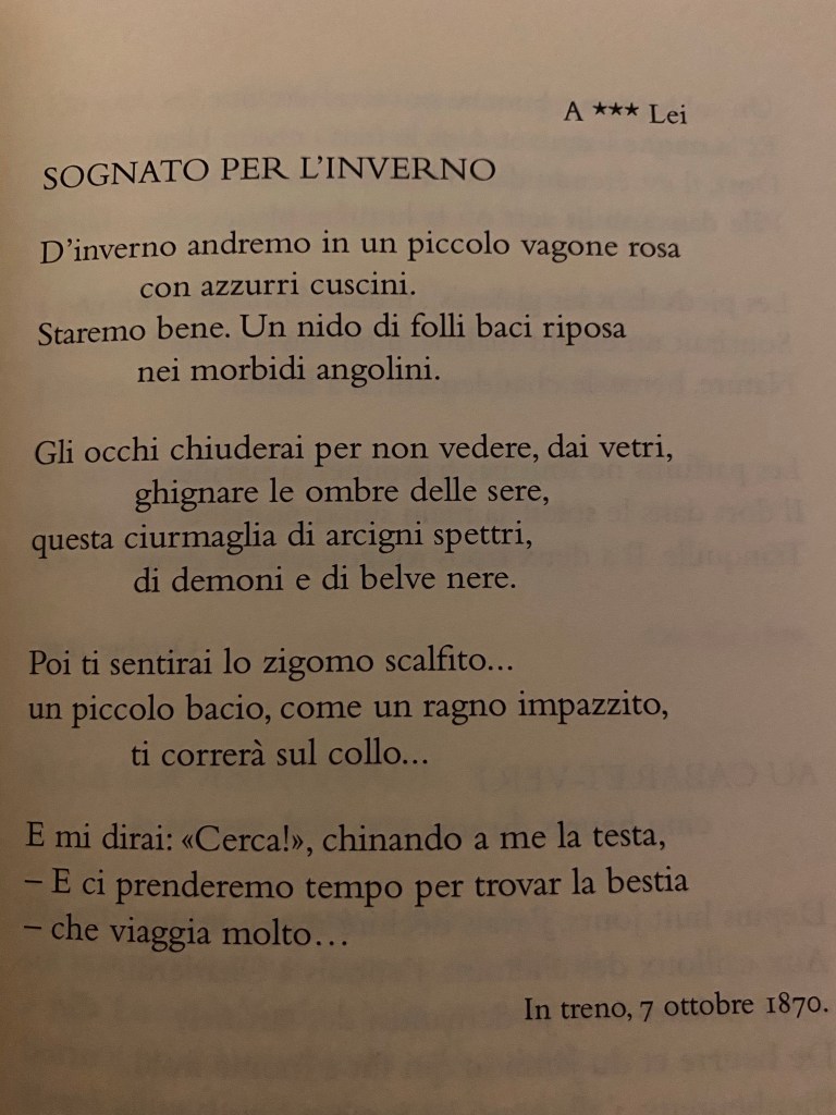 Un giovanissimo Rimbaud canta i primi amori, i primi treni, i primi baci che scheggiano la pelle come lame sul collo, i primi incubi e la prima ricerca-mutua e solidale- della bestia che imprime le tappe, le soste, le esperienze e le rivoluzioni.