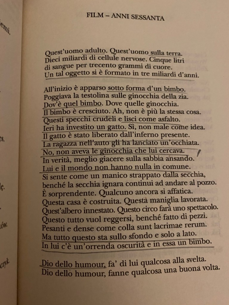 Wislawa Szymborska, premio Nobel nel 1996, con la buona pace dei detrattori, è senza dubbio una voce fuori dal coro, non riducibile a un movimento preciso che, con la sua ironia, racconta la ferocia delle piccole cose e ci mostra quanto siano gigantesche, così come lo siamo (o possiamo essere) noi. E se il Dio dello Humor non facesse nulla per noi, noi potremmo ancora salvarlo? La gioia di vivere, Adelphi Edizioni.