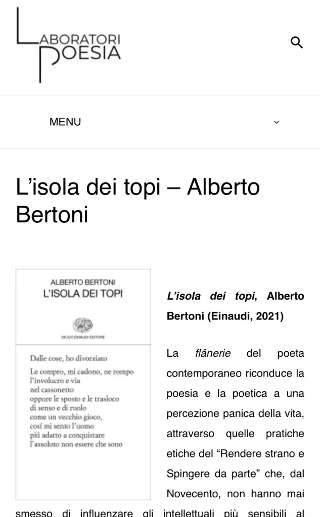 Vi parlo dell’ultima opera di Alberto Bertoni, “L’isola dei topi”, Einaudi editore.