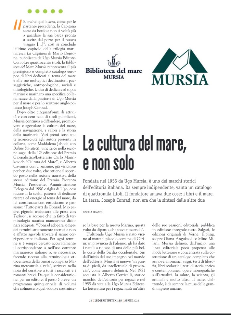 Per la mia rubrica sulle case editrici per Leggere:tutti cartaceo, vi parlo di Ugo Mursia Editore, della sua collana dedicata al mare e della vastissima scelta di generi letterari che offre al lettore.