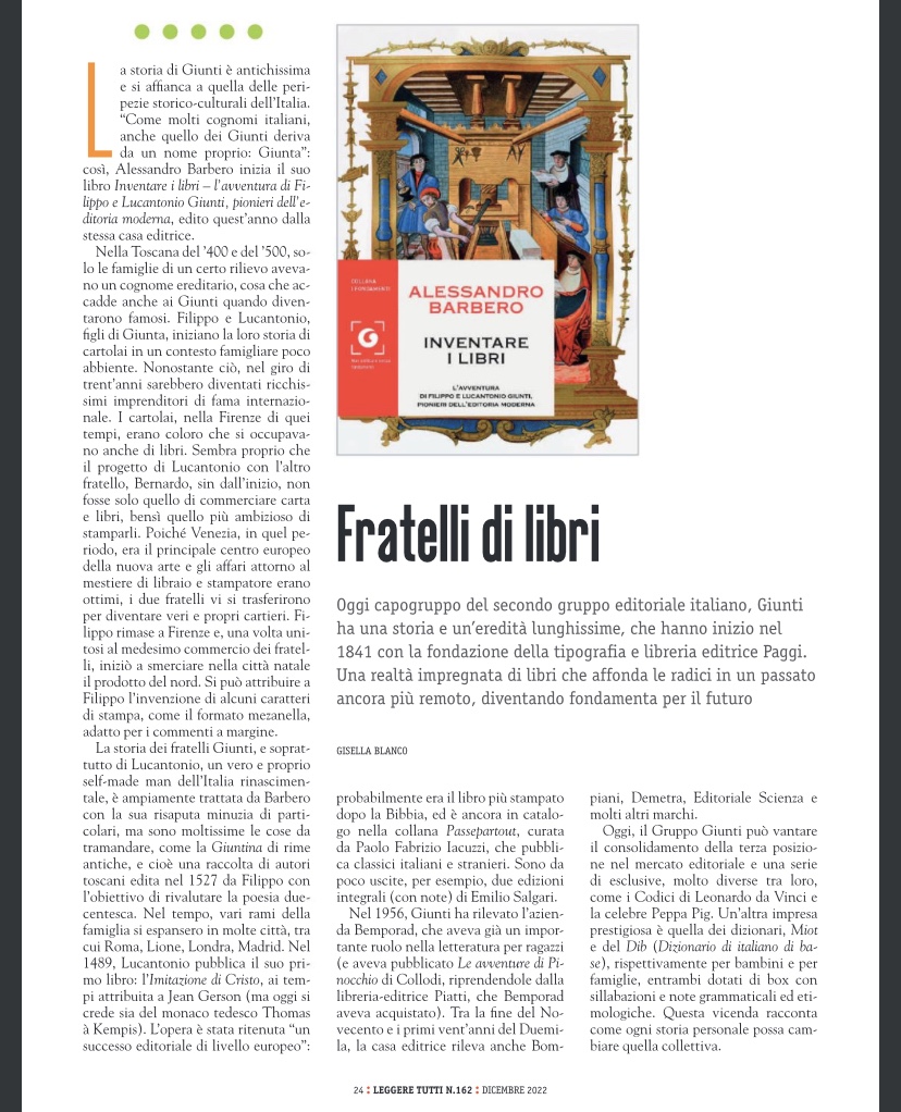 Per la mia rubrica sulle case editrici, vi parlo di Giunti Editore a partire dal libro di Alessandro Barbero Storico, “Inventare i libri”.