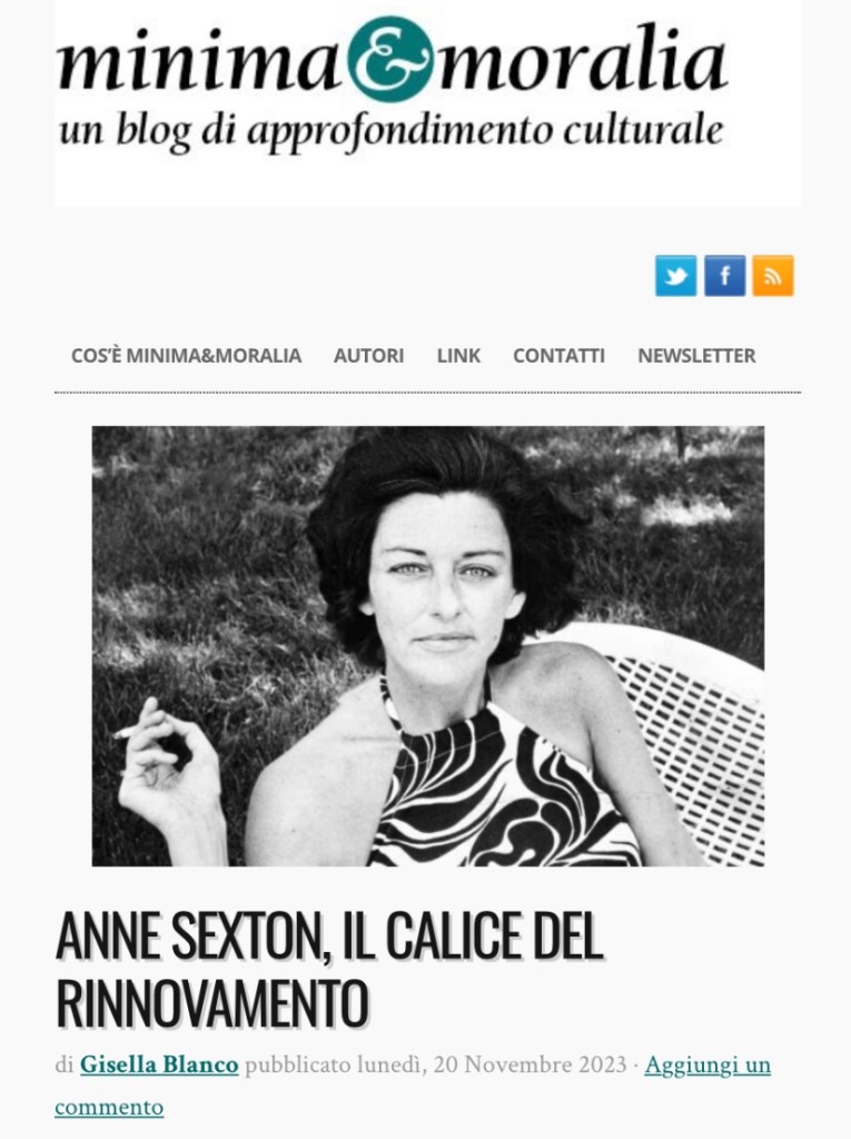 Su minima&moralia vi parlo di Anne Sexton, a partire dall’ultima deflagrante traduzione di Rosaria Rosi Lo Russo per La nave di Teseo, “Trasformazioni”.