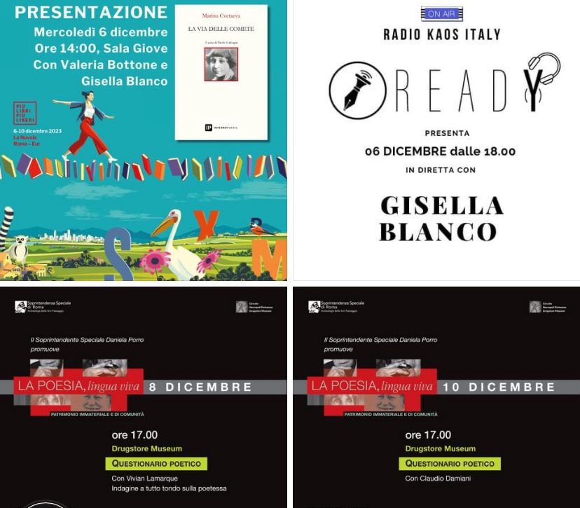 ✅Mercoledì 6 dicembre, alle 14, a Più libri più liberi, dialogherò con Valeria Bottone su Marina Cvetaeva e sull’antologia “La via delle comete” curata da Paolo Galvagni per Interno Poesia;